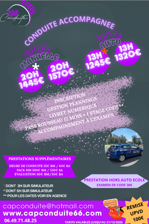 PRE INSCRIPTION A CAP CONDUITE PERPIGNAN ET VILLENEUVE DE LA RAHO