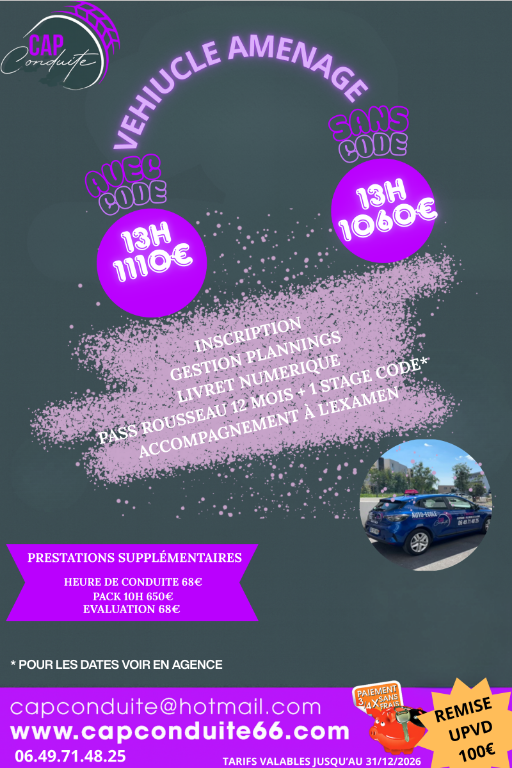 PRE INSCRIPTION A CAP CONDUITE PERPIGNAN ET VILLENEUVE DE LA RAHO
