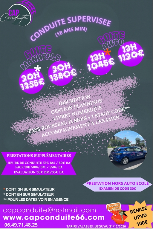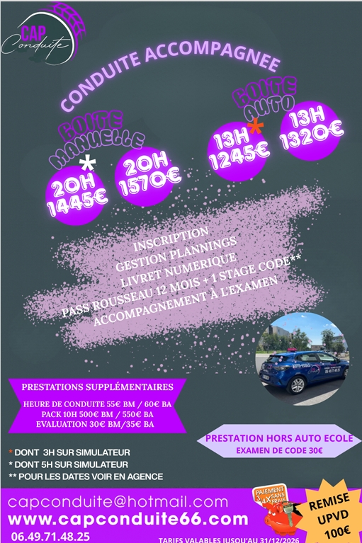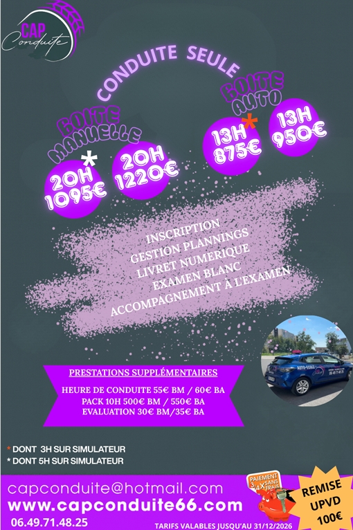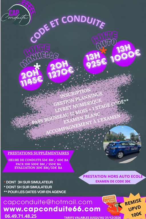 PRE INSCRIPTION A CAP CONDUITE PERPIGNAN ET VILLENEUVE DE LA RAHO